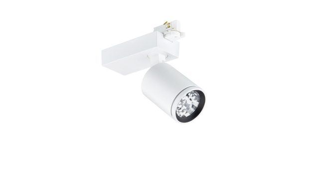 Compact, track projector, Aluminium, Weiß, Signalweiß (RAL9003), Netzteil (Ein/Aus), 3900 lm, 31 W, 132 lm/W, 2700 K, (0.458,0.410)<3, Breitstrahlend (WB), Klar, Gehärtetes Glas, IP20 | Fernhalten von Fingern, IK02 | 0,2 J Standard, Schutzklasse II, 3-phasige Stromschiene